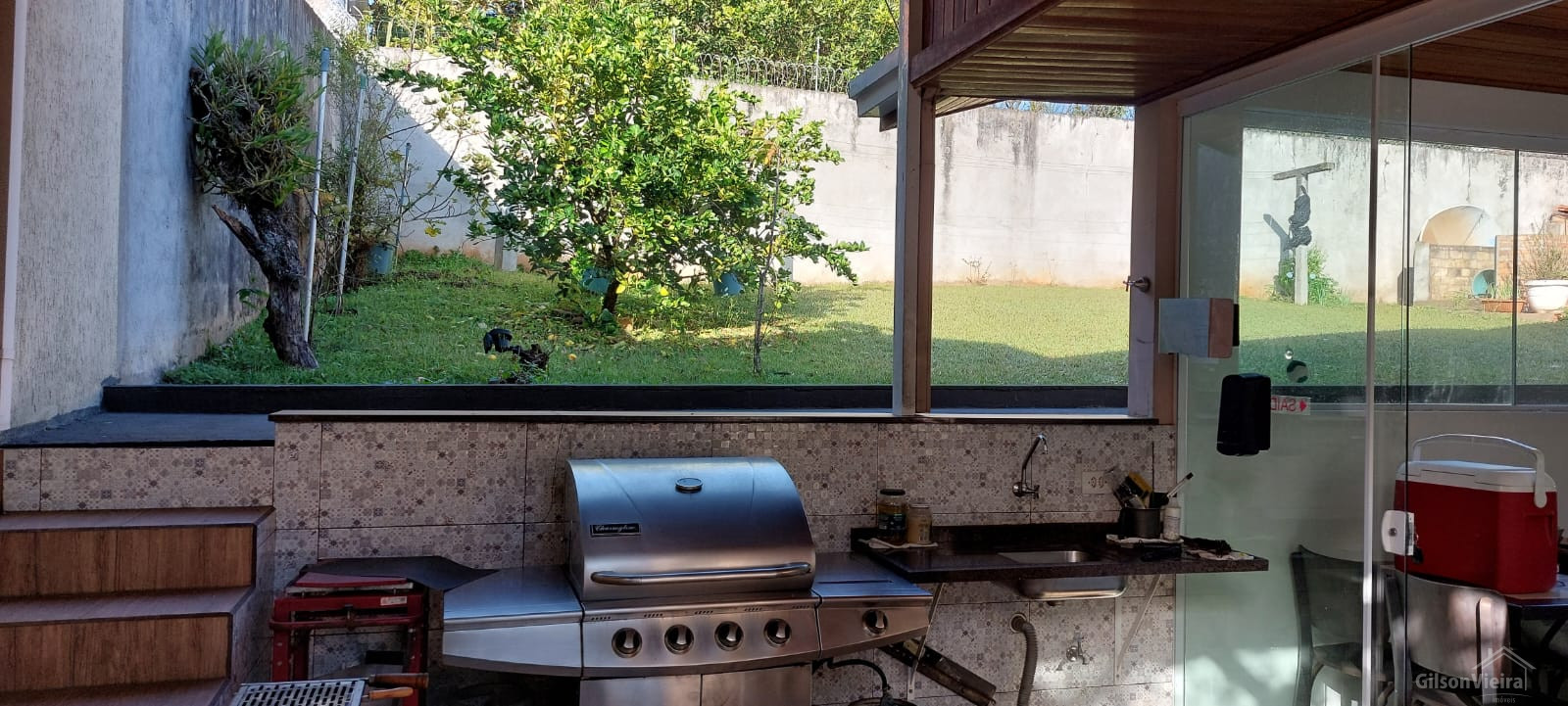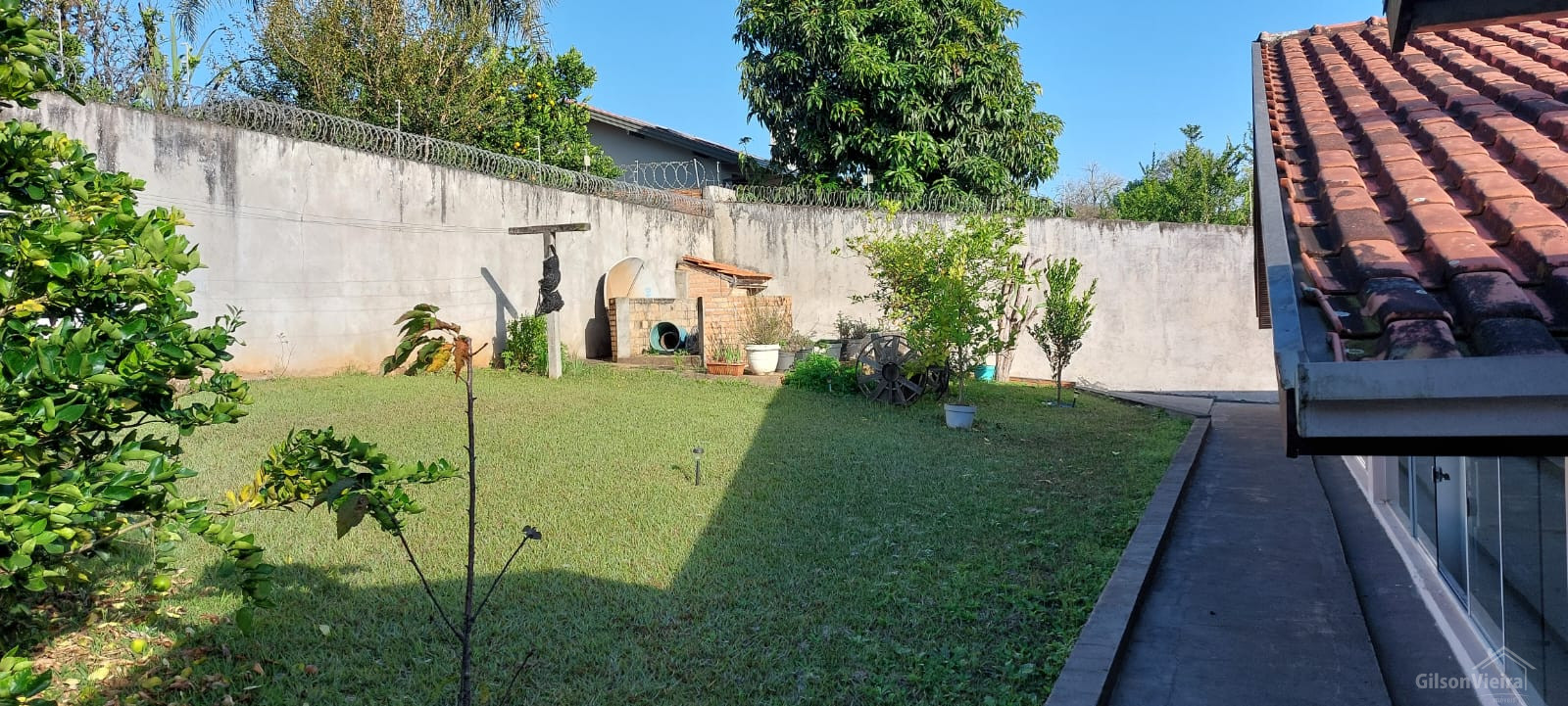 A casa tem 225m², o terreno 587m².