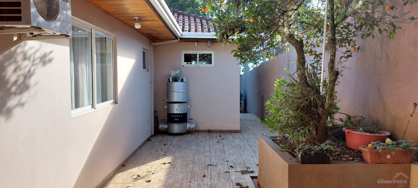 A casa tem 225m², o terreno 587m².
